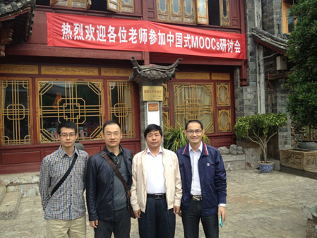 在分组交流中,王前和庄家俊老师和与会的兄弟院校老师进行了深入的交流,收获颇丰,对我院今后的慕课研究与发展有很强的参考和借鉴意义。下图为王老师、庄老师与华师教务处的张处、周科交流后合影留念。