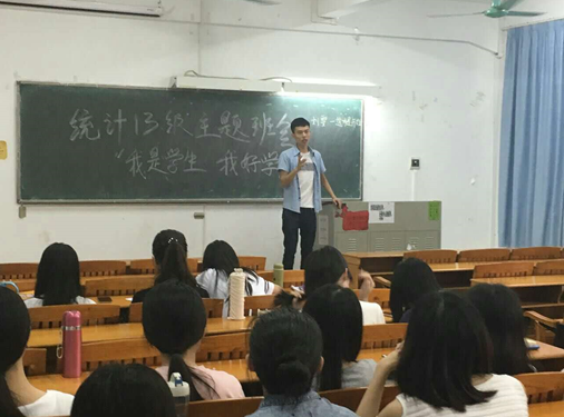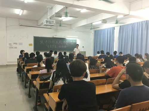 助班廖丽娟通过讲述自己求职面试的经历,提醒同学们在工作面试,要保持自信,充分展示自己的优势,还可利用暑假实践积累社会经验,并鼓励大家学好专业知识和英语,尽可能多地掌握统计分析软件的应用。