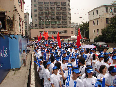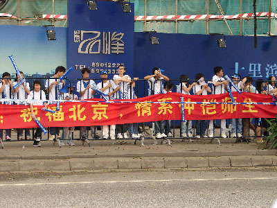 下午13:00,离火炬的到来还有2个钟,仲恺学子已经迫不及待地在校园里整整齐齐地排着队,准备去滨江路等候我们的奥运火炬了。今天的天气格外地热,每个人兴奋的脸上都是满满的汗水,但是没有一个人说热,因为在他们的心