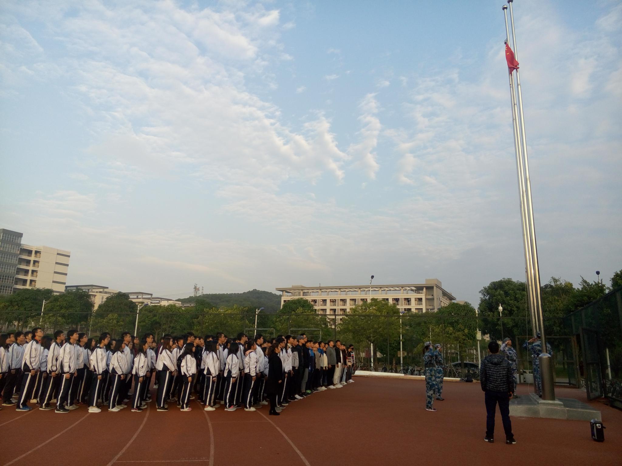 2017年12月8日上午7:30,计算科学学院在白云校区足球场举行“铭记‘一二九’ 传承爱国志 践行新使命”升国旗仪式。本次升国旗仪式由计算科学学院学生党支部组织举办,辅导员徐盼主持,党支部副书记郭肖明、学生党支部全体成员、辅导员助理,以及17级全体学生参加。
