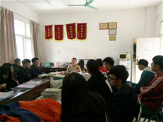 2017年12月11日上午11:00,计算科学学院就近期的课堂考勤中存在问题在A416召开了考勤工作会议。本次会议由学院党总支副书记郭肖明主持,参加人员为辅导员徐盼以及学院学生代表。本次会议的主题是“严抓学风,端正态度”。