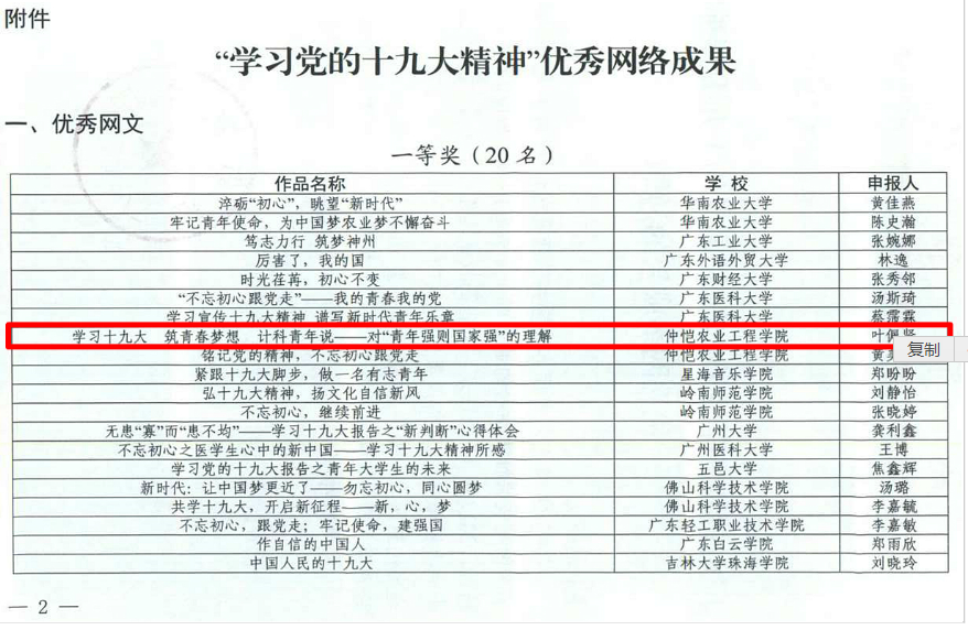 党的十九大顺利召开,应广东省教育厅宣传号召,我校组织举办“学习党的十九大精神”优秀网络成果活动,活动包括优秀网文等多项比赛类目。