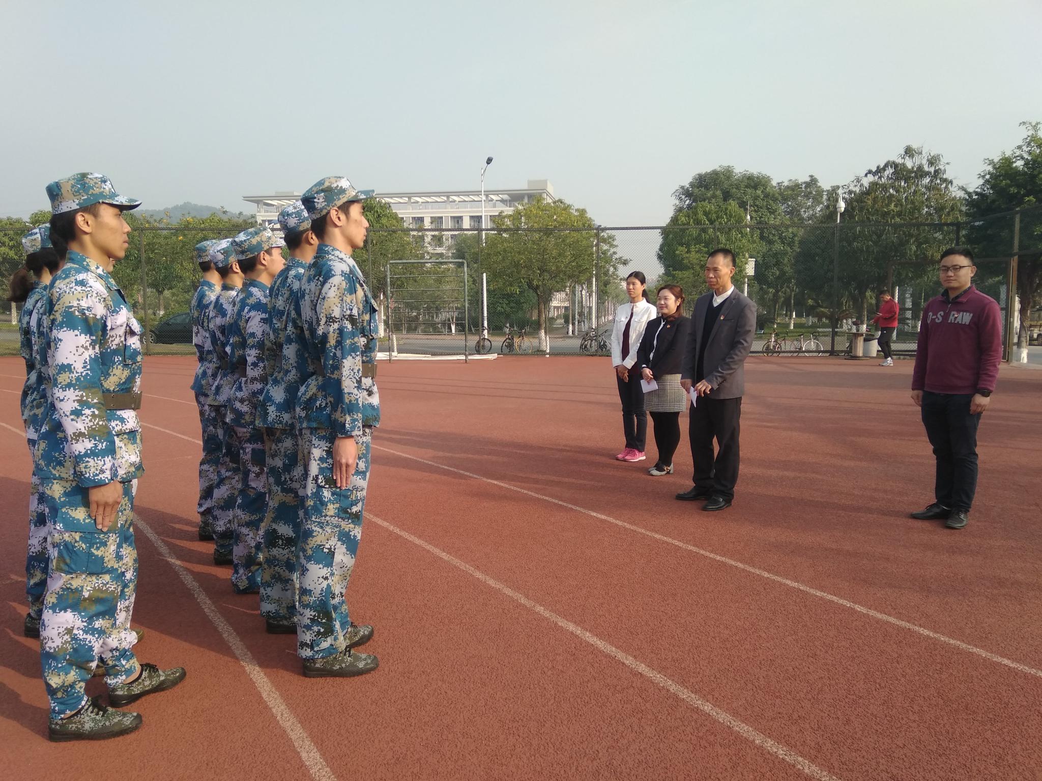 学院党总支刘伟坚书记一行于4月9日清晨来到了白云校区学校田径场,首先观看了学院国旗护卫队的日常训练情况,并检查了近期的训练效果。刘伟坚书记对本学期以来每天坚持参加学校晨练的国旗护卫队的同学们给予了充分肯定和赞赏,同时为他们支持学校国防教育和新生军事训练工作的开展表示衷心的感谢。学院老师们探访同学们的训练,为的就是鼓励大家,给同学们打气加油。在训练结束后,刘书记特意留下来与同学们分享了他对于成为护卫队成员的想法和体会。他勉励要同学们在认真配合训练的同时也不落下学习,做时间的主人,协调好生活,学习,工作的关系;同时,训练过程中难免会遇到困难,同学们不要畏惧困难和苦累,坚持不懈才能锻造坚强的意志和坚定信念。