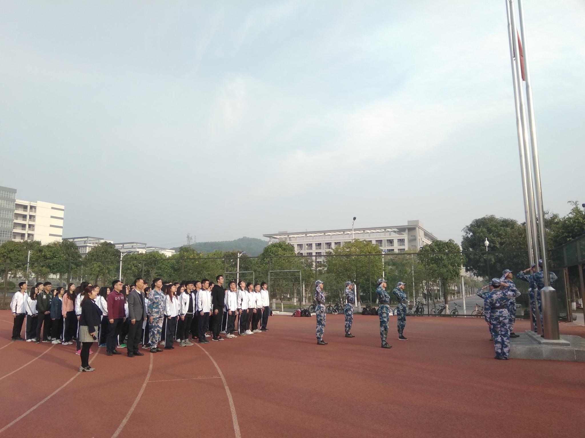 在庄严肃穆的国歌声中五星红旗冉冉升起,在场的同学们敬礼仰注,为我们伟大祖国的日益繁荣昌盛以及为我们能身在这美好时代而自豪。刘伟坚书记作了国旗下的讲话。首先,他指出,作为优秀的青年学生要带头深入学习习近平总书记系列重要讲话精神,始终把“为人民服务”的初心置于最高位置。“两会”是在全面贯彻党的十九大精神开局之年召开的重要会议,吹响了决胜全面建成小康社会、迈向社会主义现代化国家新征程的嘹亮号角。这些都是青年学子需要密切关注和进行及时学习的内容。