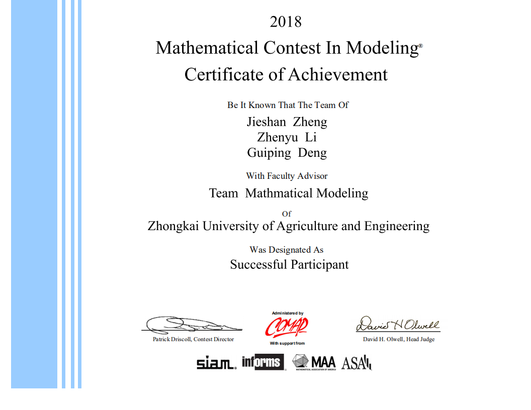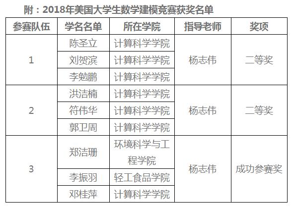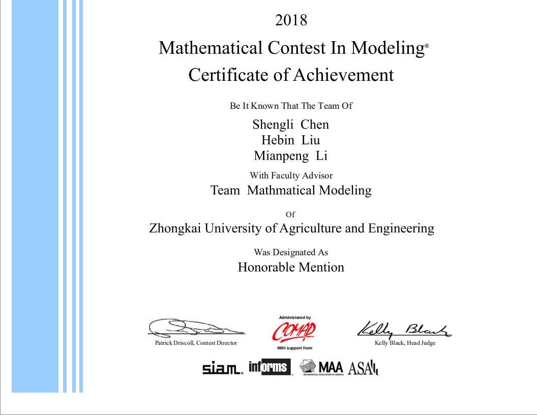 日前,2018年美国(国际)大学生数学建模竞赛(MCM/ICM)成绩揭晓。我校组织的3支参赛队伍在本次比赛中获二等奖(Honorable Mention)2项、成功参赛奖(Successfully Participation) 1项。