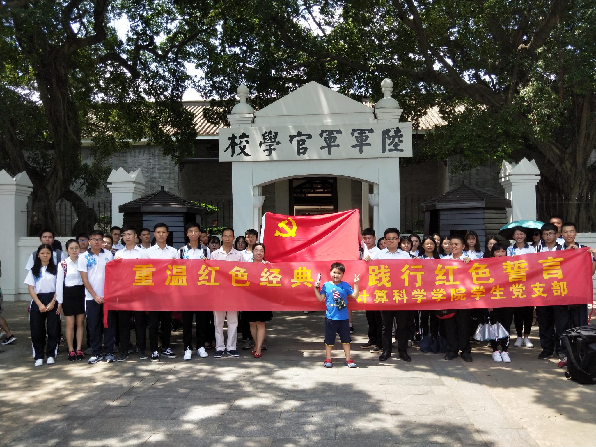 7月1日,计算科学学院组织学生党员、预备党员、以及入党积极分子到黄埔军校进行学习参观,本次活动由学院党总支书记刘伟坚主持并在黄埔军校旧址内给学生党员上党课,学院党总支副书记郭肖明以及徐盼辅导员出席了活动。当天,全体师生党员们胸前佩戴党徽,衣着整洁干净,笑容满面,用青春的朝气与活力向祖国献礼。黄埔军校之所以能够在中国革命的历史进程中产生重要影响,成为一所声名显赫的军校,就在于其确立的以爱国、革命为主要标志的黄埔精神,铸就了黄埔军校的“灵魂”,形成其最鲜明的特征。