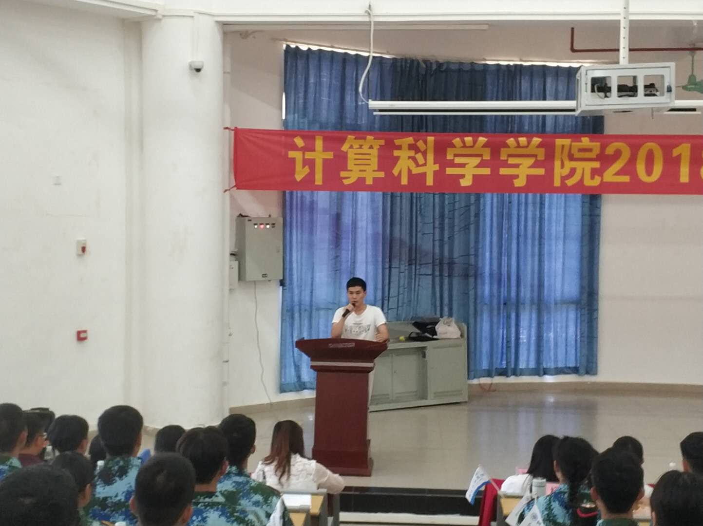 2018年9月11日下午13:30分,我院在D1小礼堂举行了计算科学学院2018级新生见面,参加本次会议的有计算科学学院党总支书记刘伟坚、副院长张超龙、各专业教师等。会议由我院党总支副书记郭肖明主持。