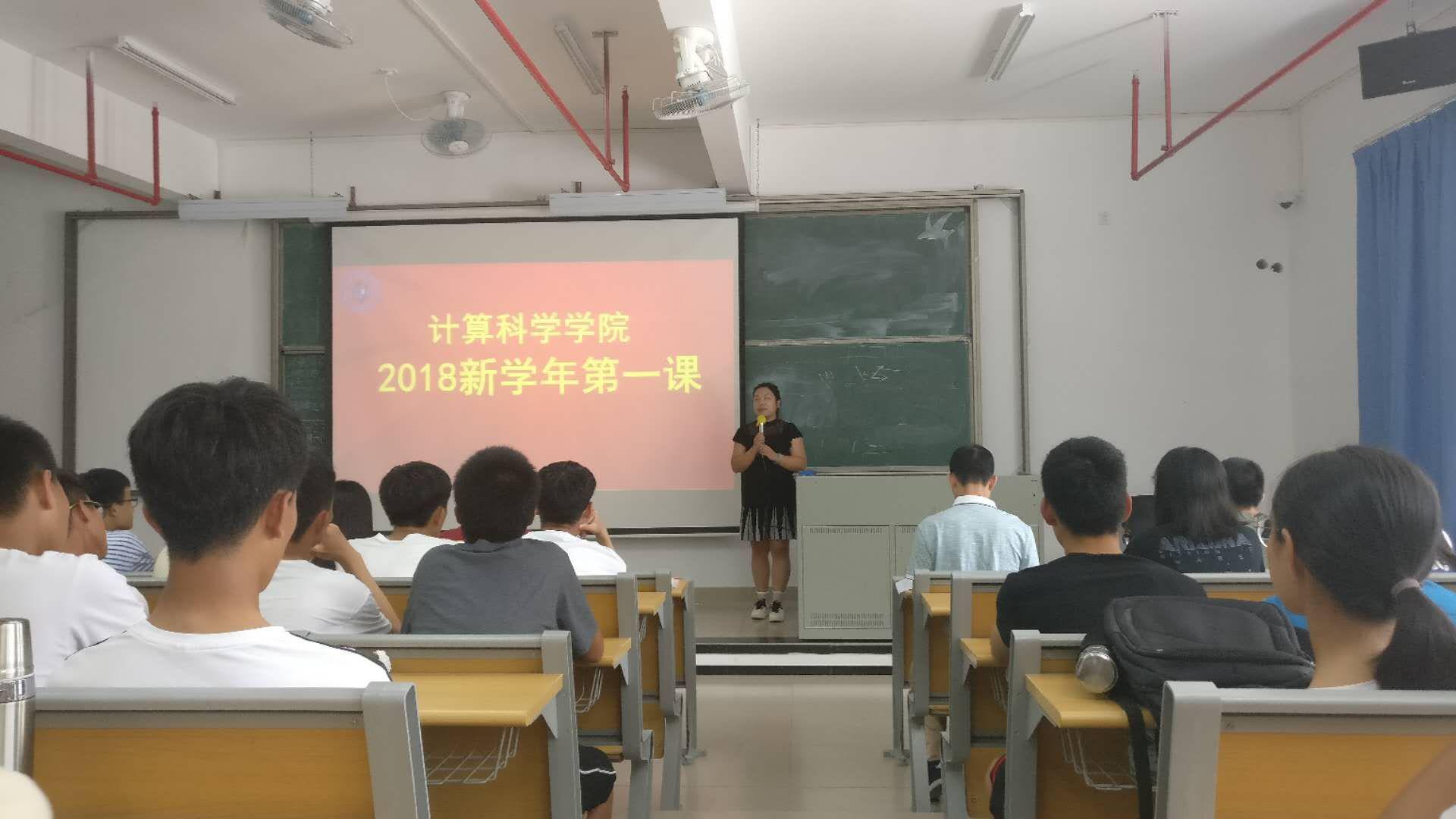 2018年9月26日,计算科学学院开学第一课在D210如期举行。开学第一课由党总支书记刘伟坚、院长张超龙主讲,党总支副书记郭肖明主持,辅导员徐盼、张素雅也参与了此次活动。