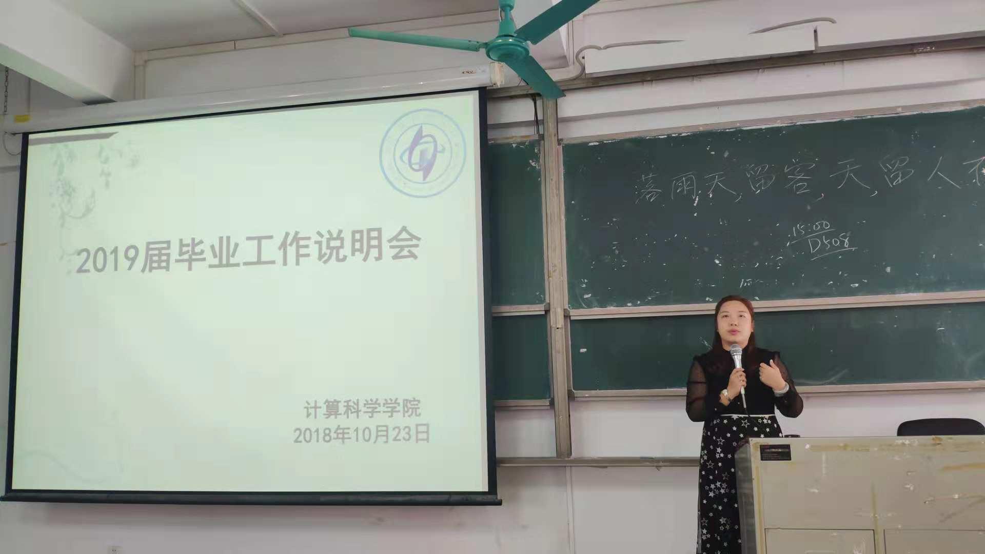 2018年10月23日下午15:00,计算科学学院组织全体应届毕业生就近期的毕业生相关工作召开了说明会,主要讲解关于考研、考公、选调生、毕业实习、毕业论文撰写以及毕业生档案存放等相关事宜。出席本次会议的有计算科学学院党支副书记郭肖明,辅导员张素雅,2019届全体毕业生参加。
