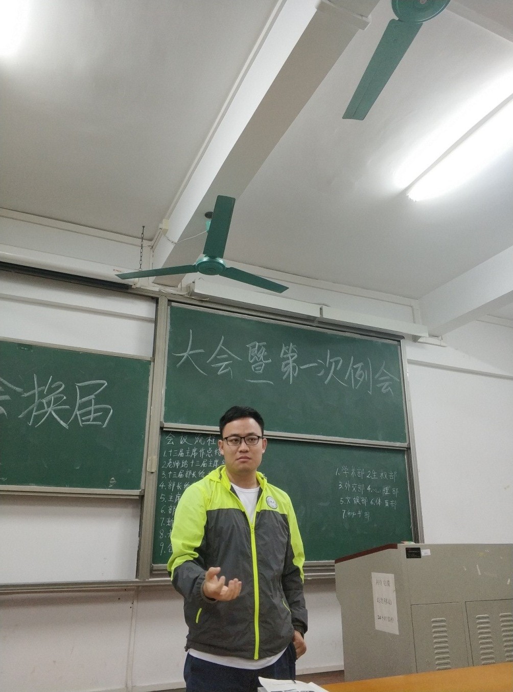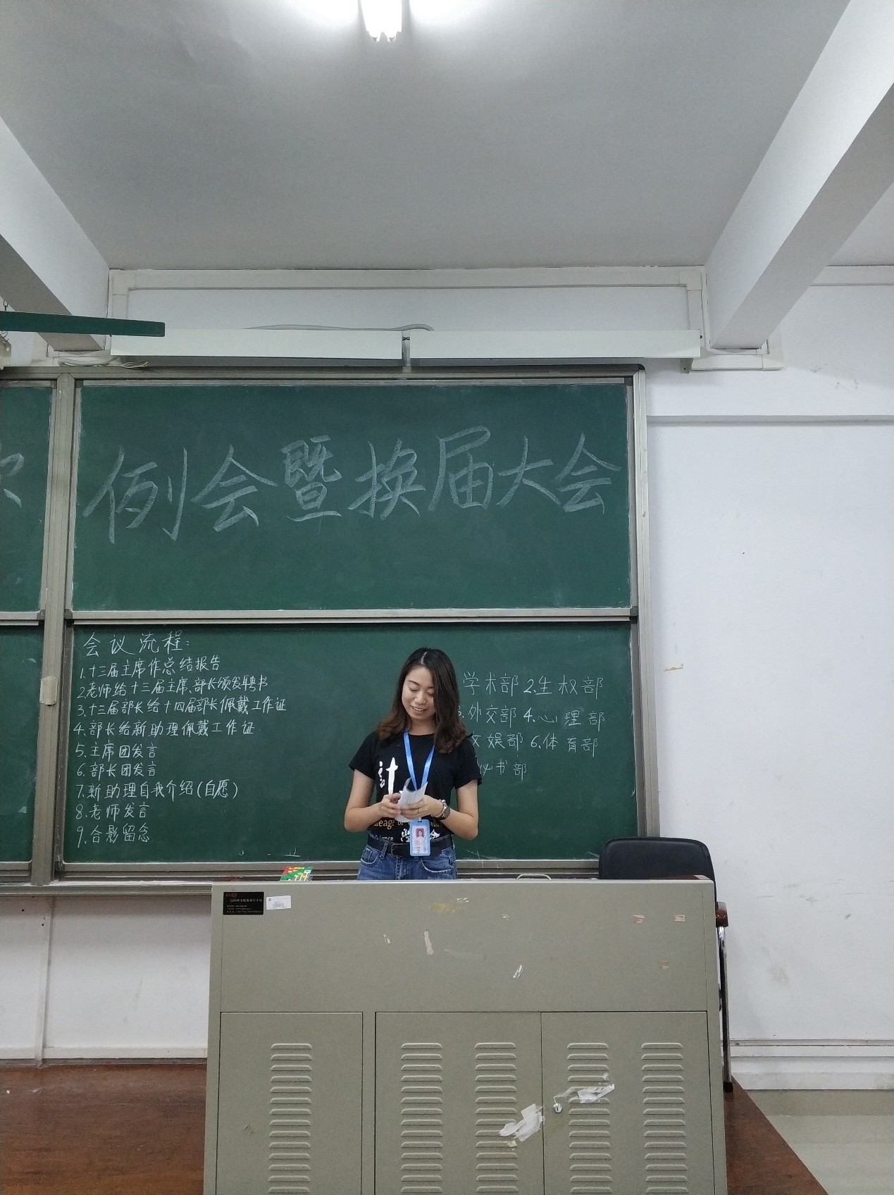 会议开始,上届学生会主席庞颖昕作总结报告。庞颖昕发表了自己在学生会工作三年来的感言,同时结合自身经历,给大家传授了许多宝贵的工作经验,希望大家以后能够多发挥模范带头作用,让学生会以后的工作开展得越来越顺利。