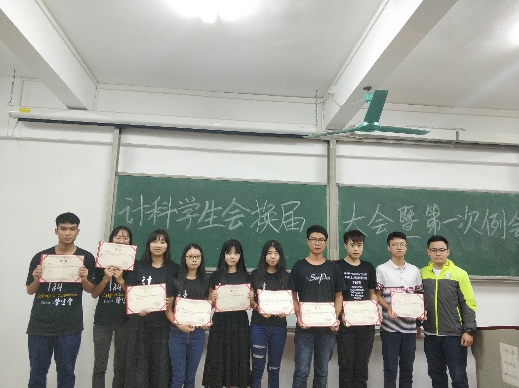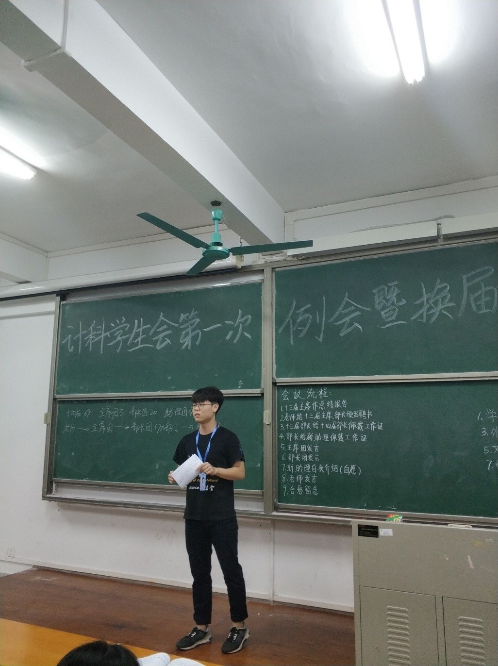 随着计算科学学院学生会招新活动的圆满结束,2018年10月25日下午五点整,计算科学学院学生会在杨楼409召开了2018级院学生会换届大会。参加本次大会的有计算科学学院党总支书记刘伟坚、辅导员徐盼、辅导员张素雅以及院学生会全体学生干部。