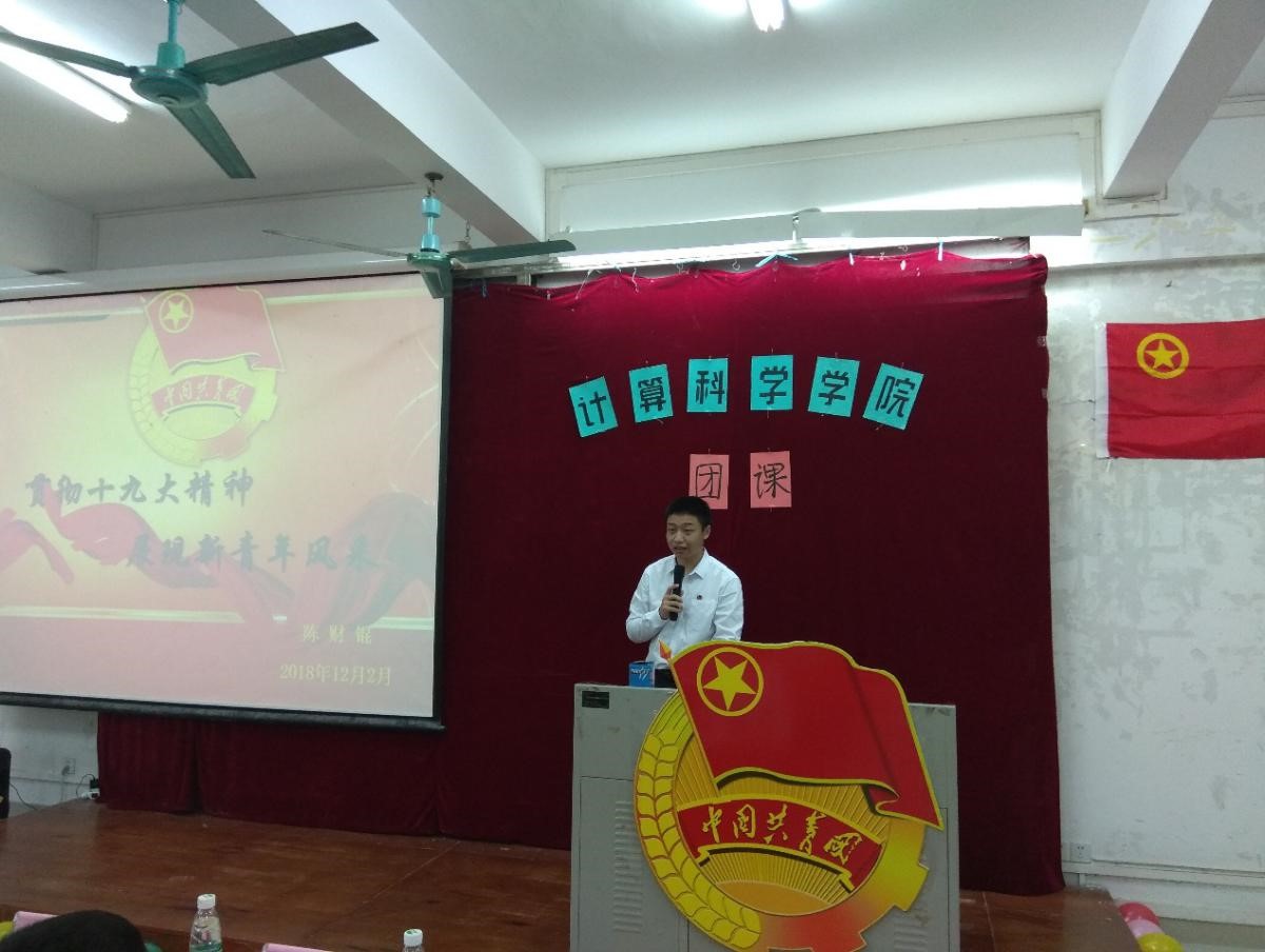 为了增强团员的政治意识,提升团员的理论水平,计算科学学院于12月2日在杨楼210开展主题为“贯彻十九大精神,展现新青年风采”的团课活动,出席本次活动的嘉宾有校团委组织部代表陈益群同学、唐晓仪同学,院团委书记团代表刘晓瑾同学、陈财锟同学、张锡鸣同学,学生会主席团代表陈晓璐同学、杨世文同学,青协会长团代表李伟楠同学,其他学院组织部代表以及计算科学学院2018级全体新生。