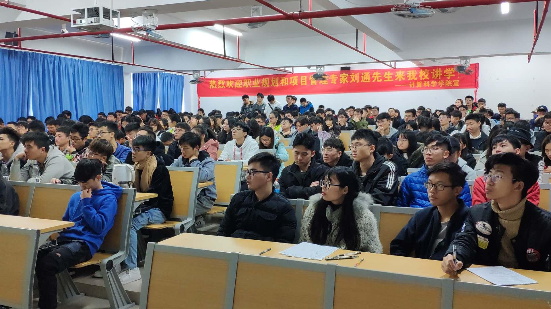 2019年1月3日,计算科学学院在白云校区D栋310多媒体课室举办了题为“IT职业发展前景与项目管理沙盘案例分析”的讲座。本次讲座,我院有幸邀请到东方瑞通培训讲师刘通老师为我院学生开讲,参与本次讲座的有计算科学学院党总支副书记郭肖明、辅导员张素雅,讲座由信息与计算科学系主任王前老师主持。