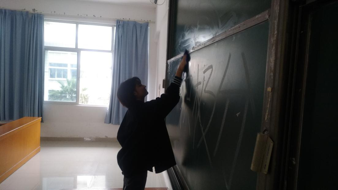 由于学校课室黑板使用率较高,而教师自己擦黑板会占用比较多的时间,为了保证教学时间的充裕,学生能够更好地看清字迹,为教师和学生提供一个干净、整洁的学习环境,我们决定将杨楼所有课室的黑板擦干净,整理好讲台,打扫好卫生。
