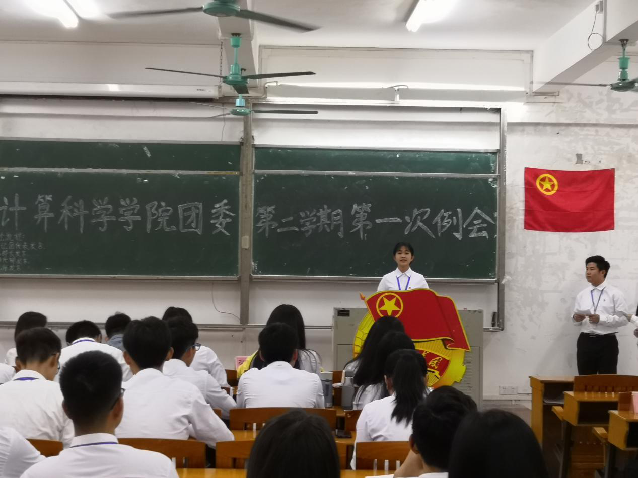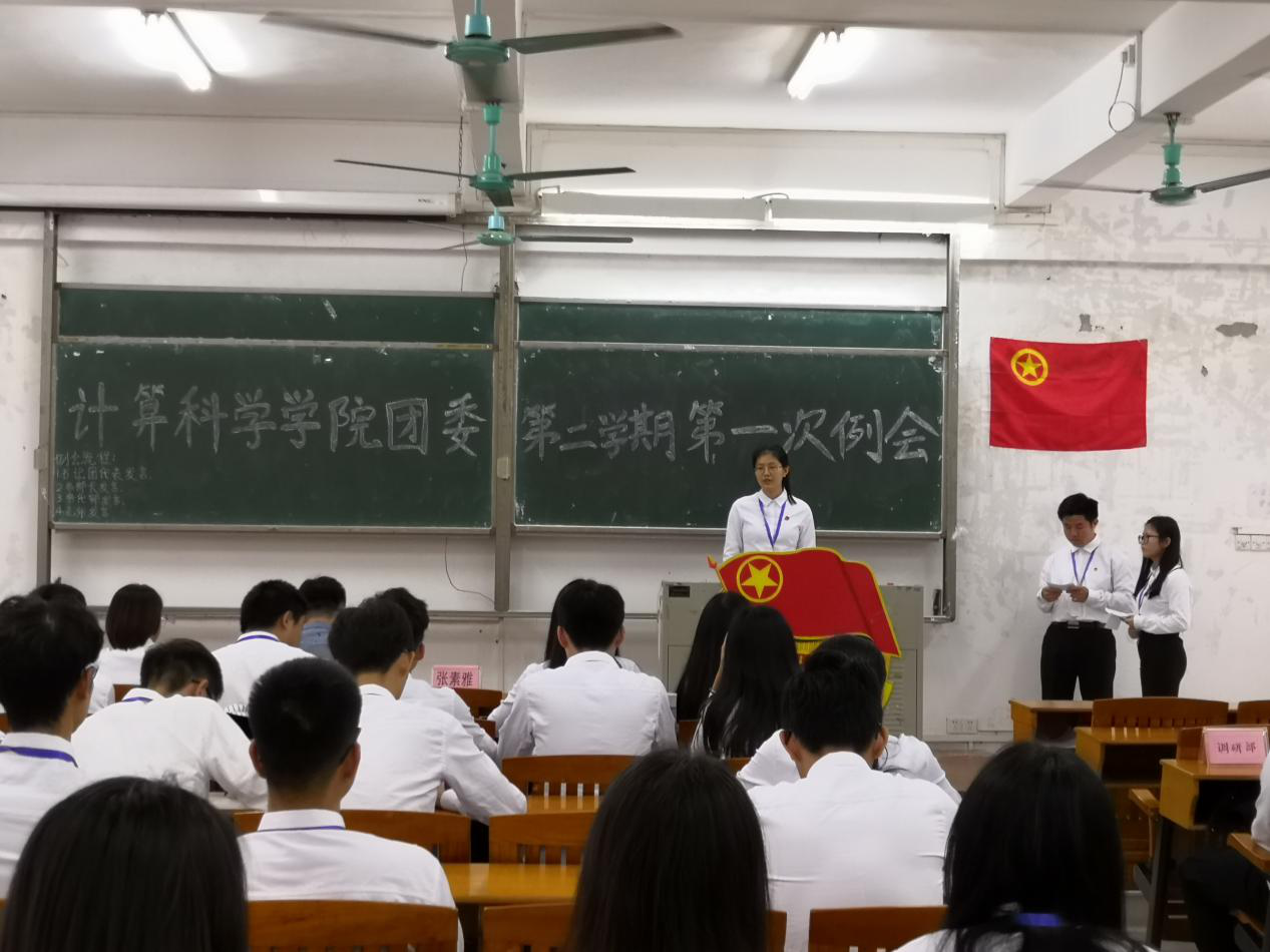 2019年3月28日下午5点,计算科学学院团委在杨楼210室召开了本学期第一次工作例会,参加本次会议的主要有院团委副书记徐盼老师、辅导员张素雅老师、校团委代表以及院团委全体成员。