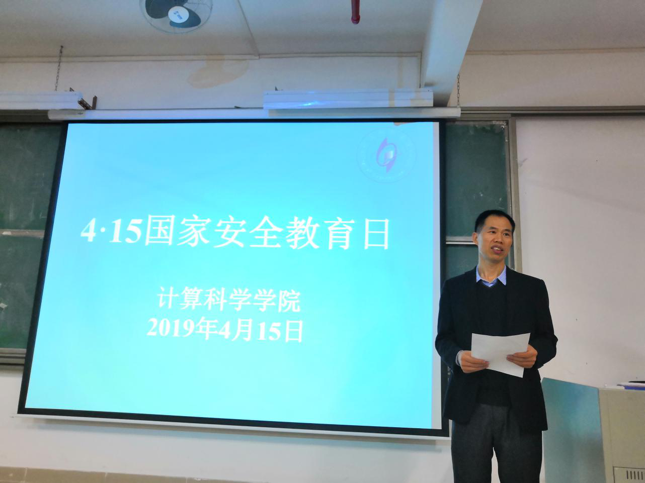 2019年4月15日是第4个国家安全教育日,为提高学生对国家安全的认识,加强学生忧患意识,增强学生国家安全观念,当天下午计算科学学院举办国家安全教育讲座。出席本次活动的有计算科学学院党总支书记刘伟坚、辅导员张素雅老师,以及大一全体同学。