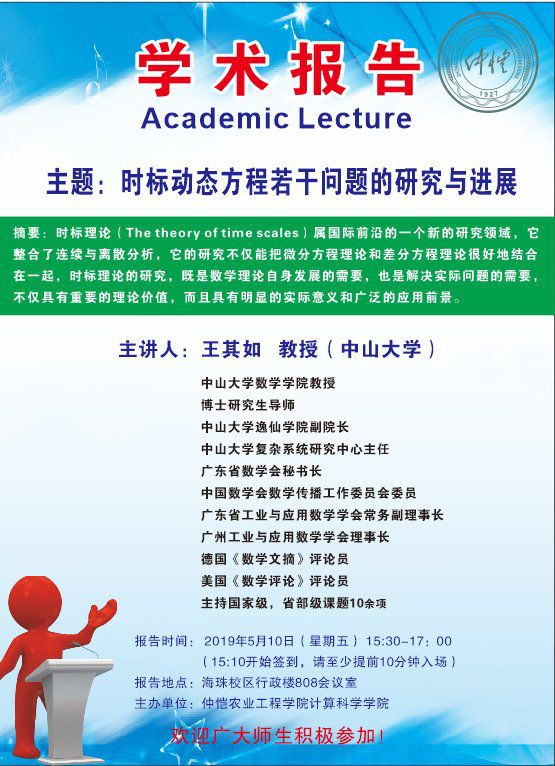 王其如教授学术报告——主题:时标动态方程若干问题的研究与进展