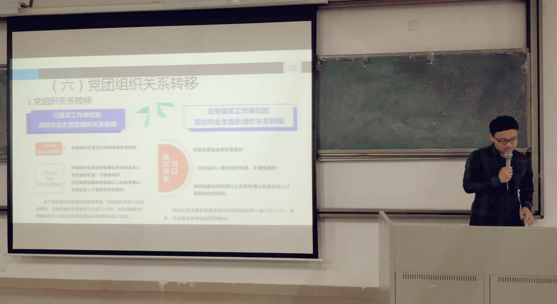 徐盼老师对党团组织关系转移等问题进行了详细的讲解,就毕业生关心的问题进行解答,希望各位毕业生能够在日后的单位中积极发挥党员的先锋模范作用,成为党组织的骨干,尽心尽力为人民服务。