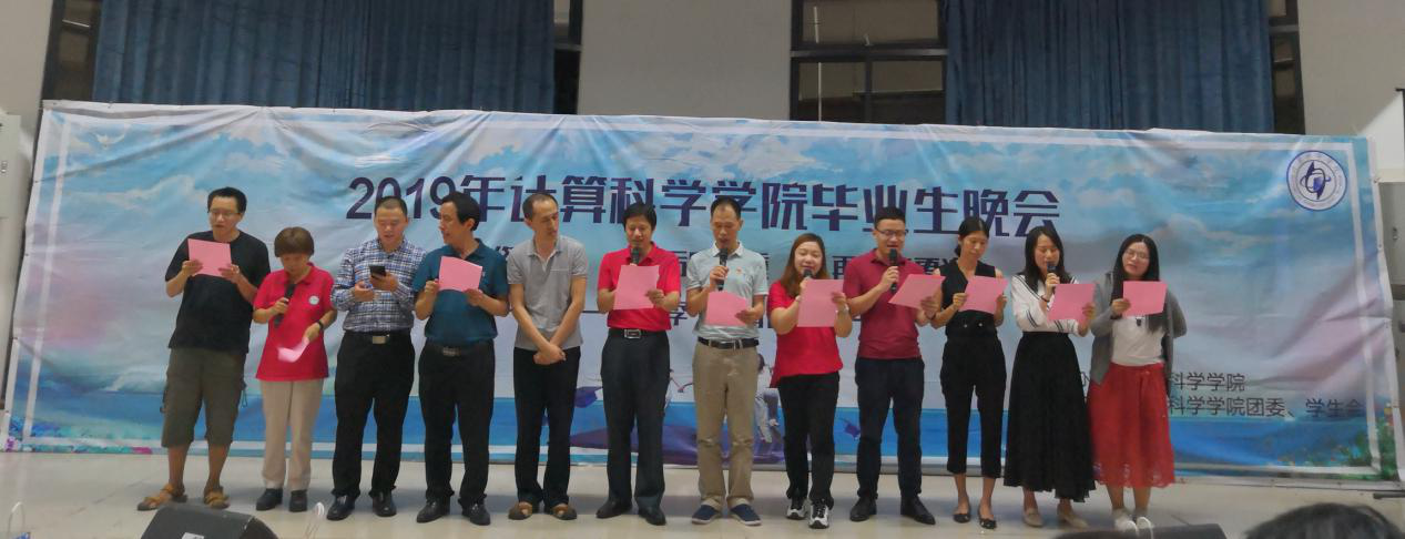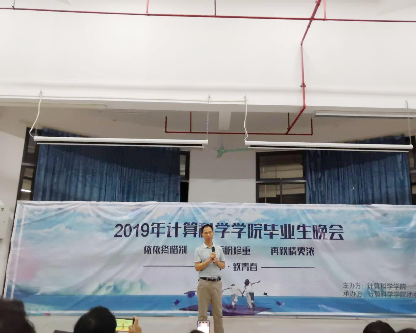 5月23日晚七点,计算科学学院毕业生晚会在D1小礼堂举行。出席本次活动的嘉宾有党总支书记刘伟坚老师、院长张超龙老师、党总支副书记郭肖明老师、副院长吴东庆老师、办公室主任肖爱武老师、黄业辉老师、陈创鑫老师、黄卫红老师,辅导员徐盼老师和张素雅老师,李聘环老师、郑晓玲老师以及院学生组织代表。