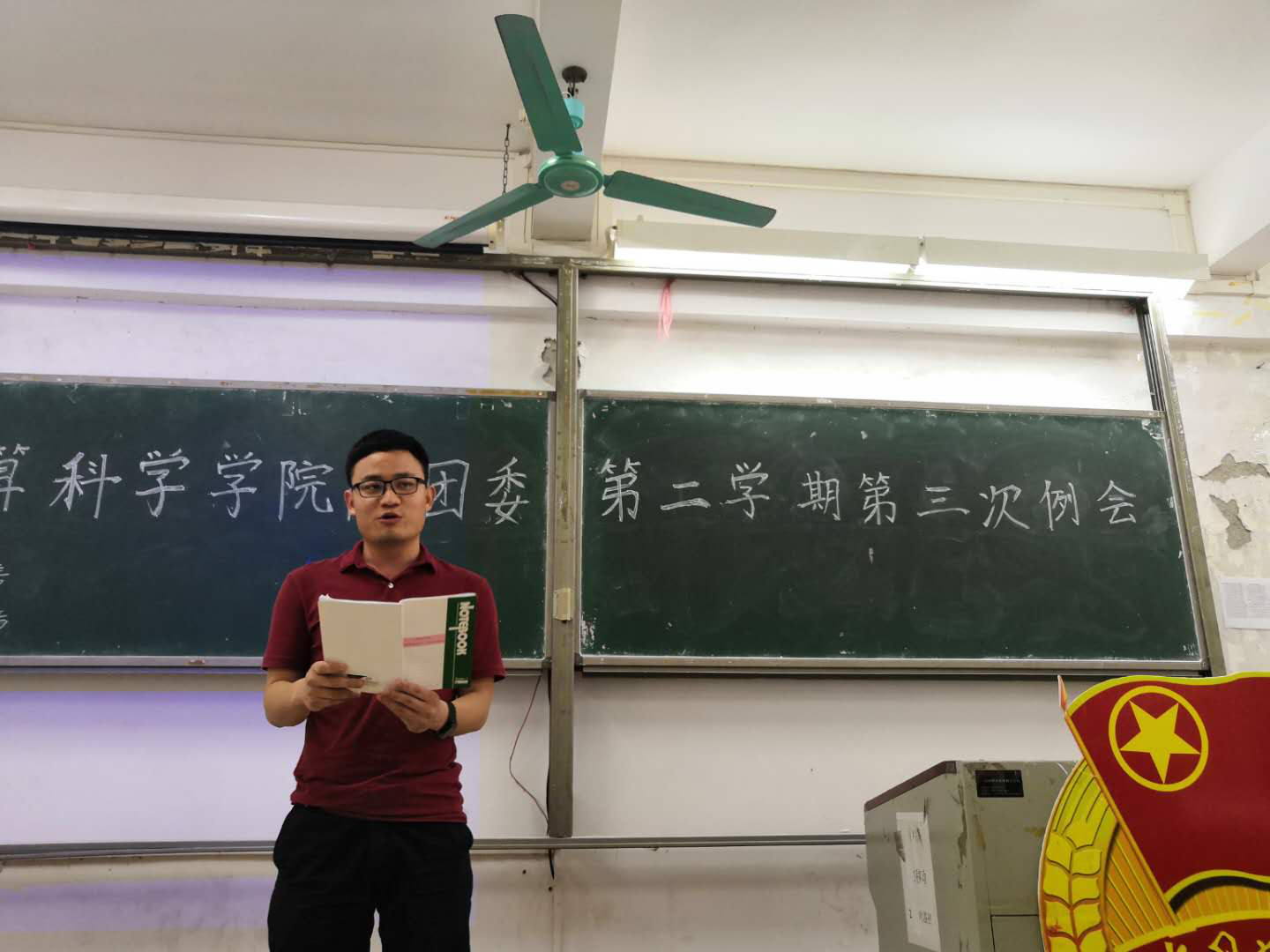 为总结和分析5月份工作完成情况,明确下个月的工作内容,计算科学学院团委于2019年5月28日下午召开了本学期第三次工作例会。参加会议的人员主要有院团委副书记徐盼老师,辅导员张素雅老师以及校团委办公室代表、院团委全体成员。