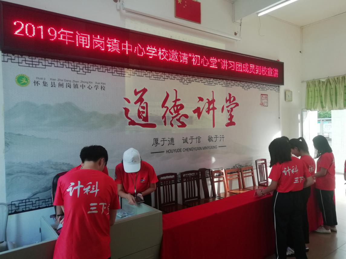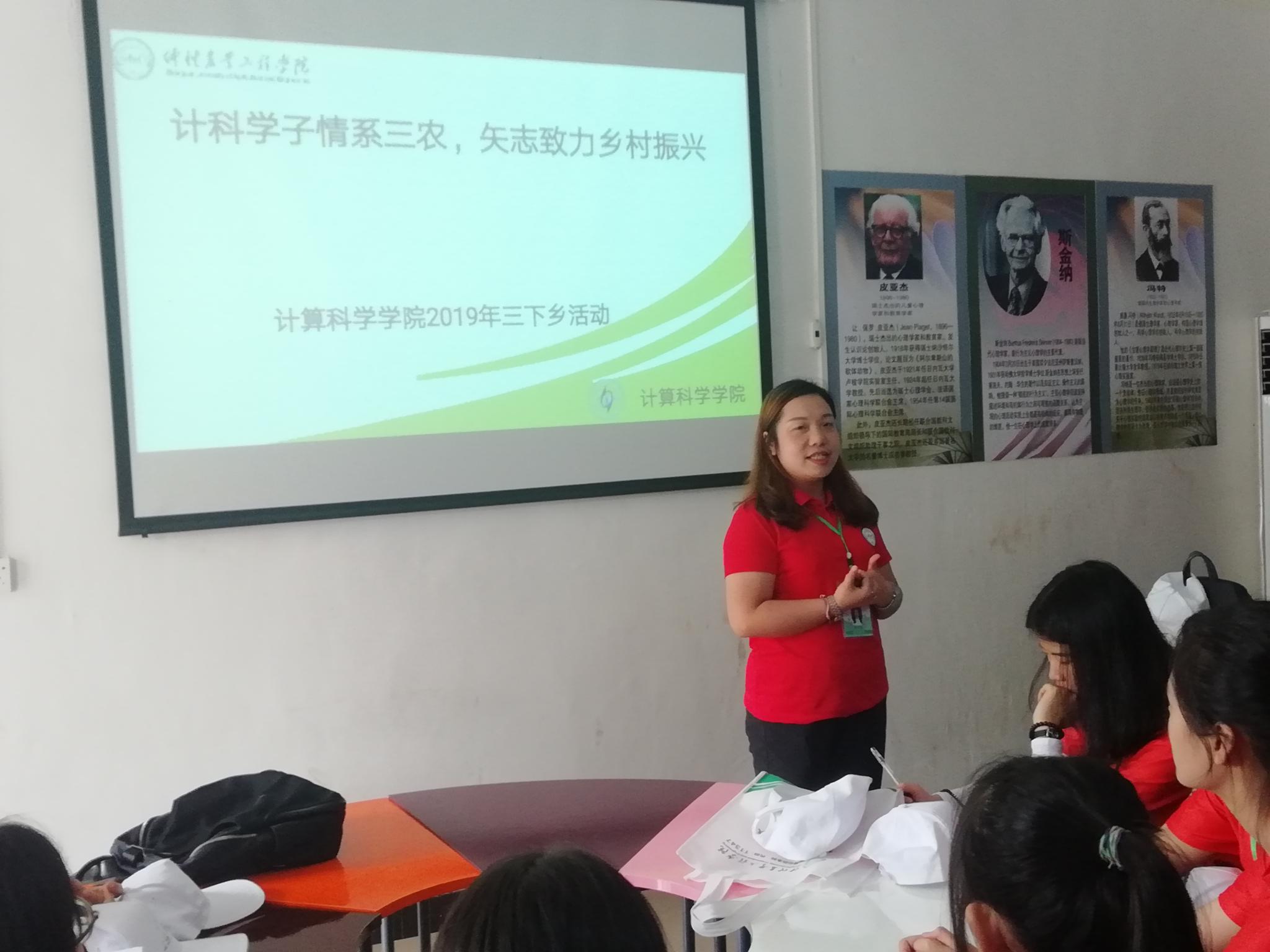 为了更好地贯彻落实乡村振兴战略,培养“一懂两爱”的新农人,2019年7月10日上午,计算科学学院组织30名社会实践队员积极参与暑期三下乡社会实践活动,由计算科学学院党总支副书记郭肖明,办公室主任肖爱武,团委副书记徐盼,辅导员廖蕃带队,来到美丽的肇庆市怀集县闸岗中心学校开展主题为“计科学子情系三农,矢志助力乡村振兴”的三下乡活动。