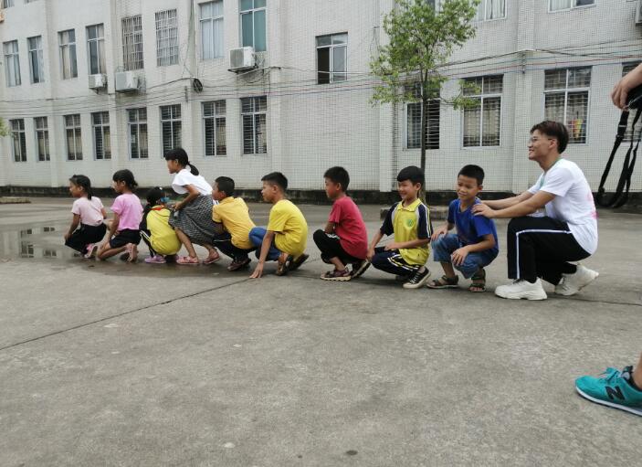 为了让孩子们与“计科仲夏梦想队”的成员们相互熟悉,我们举办了一场有趣的“破冰运动会”。支教组的老师开展了简单有趣的游戏,期间在三下乡队员们的带领下,聪颖的孩子们经过一两次简单的尝试,便能够和队友共同完成游戏。