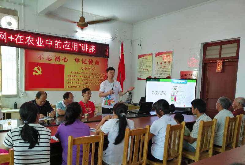 7月12日,为建设美丽乡村,振兴乡村经济,更好地帮助农户认识互联网及其在农业中的应用。计科三下乡队伍来到我校对口扶贫点——洊水村开展《“互联网+”在农业中的应用》讲座。上午10:00,讲座正式开始。出席本次讲座的有肇庆市怀集县梁村镇副镇长李飞龙,梁村镇洊水村支书梁育清,洊水村驻村第一书记熊哲清,仲恺农业工程学院驻洊水村工作队队员赵宇,计算科学学院办公室主任肖爱武,计算科学学院辅导员廖蕃。本次讲座由熊哲清书记主持,计算科学学院辅导员廖蕃老师主讲。