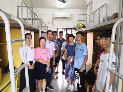 走访新生宿舍期间,领导和老师们仔细查看新生宿舍情况,聆听了新生对学校环境、学院迎新工作的感受,也详细听取家长和新生对宿舍环境及硬件设施的一些意见和建议,对家长和学生关心的问题给予了耐心细致的答复。