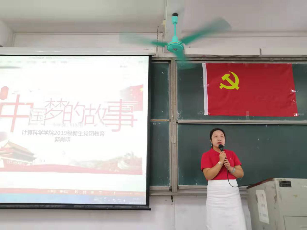 10月11日下午,计算科学学院在杨楼210开展2019级新生党团教育活动。在本次党团课上,学院党总支副书记郭肖明作了题为《中国梦的故事》的讲座分享,学院辅导员张素雅、廖蕃以及2019级全体新生参加了学习活动。