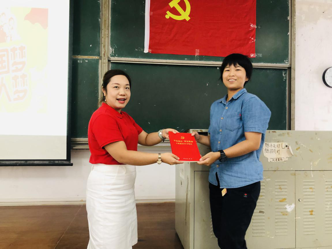 一改党团课内容的枯燥和形式单一,讲座中设置有奖问答环节,郭肖明一边讲,一边让学生思考,并将印有“不忘初心,牢记使命”的笔记本赠与积极参与互动的学生,勉励学生学习习近平总书记新时代中国特色社会主义思想和系列重要讲话精神,不断提升自我,补足精神之钙,用科学理论武装头脑,积极向党组织靠拢。