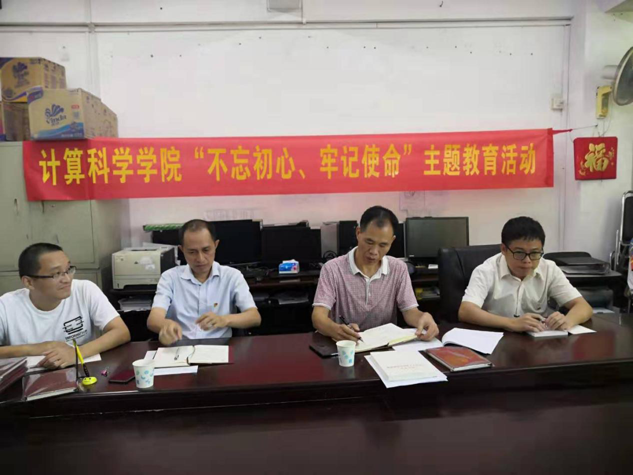 会议开始,计算科学学院党总支书记刘伟坚传达了学校重要文件精神,表示这是计算科学学院教职工党支部第二次召开主题教育学习研讨会,通过分享自己近期的学习心得,进一步加强全体教职工党员的政治理论素养,加深对“初心使命”的认识,全体党员同志都应该积极投身到主题教育活动的学习和实践中。