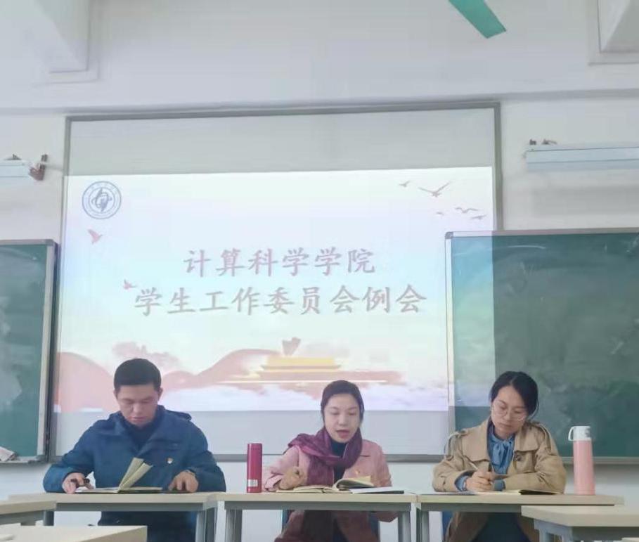 12月2日下午17:00,计算科学学院在D202召开学生工作委员会议,参与会议的成员主要有学院党总支副书记郭肖明、辅导员张素雅和廖蕃,以及辅导员助理、学生党支部负责人、院团委书记团,院学生会主席团、院青协会长团、军事教导大队成员等。