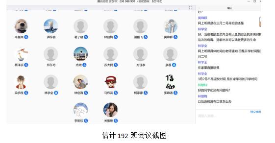 本次疫情防控线上主题班会充分利用网络新媒体技术,跨越空间障碍,发挥线上实时互动的优势,不仅加强了计科学子的自我教育、自我管理和自我服务,也让他们对疫情防控期间学校各项防疫措施、线上教学工作安排等有了更加深刻的了解和认识,与此同时各班还介绍了学院党员投入疫情防控工作的典型事例,激励大家向先进看齐。通过本次线上主题班会,同学们对此次新冠肺炎疫情更加了解,也对自己接下来的学习任务和日程安排更加清晰。大家纷纷表示,一定按照学校要求上好网课、居家隔离,用实际行动为疫情防控做出自己的贡献。