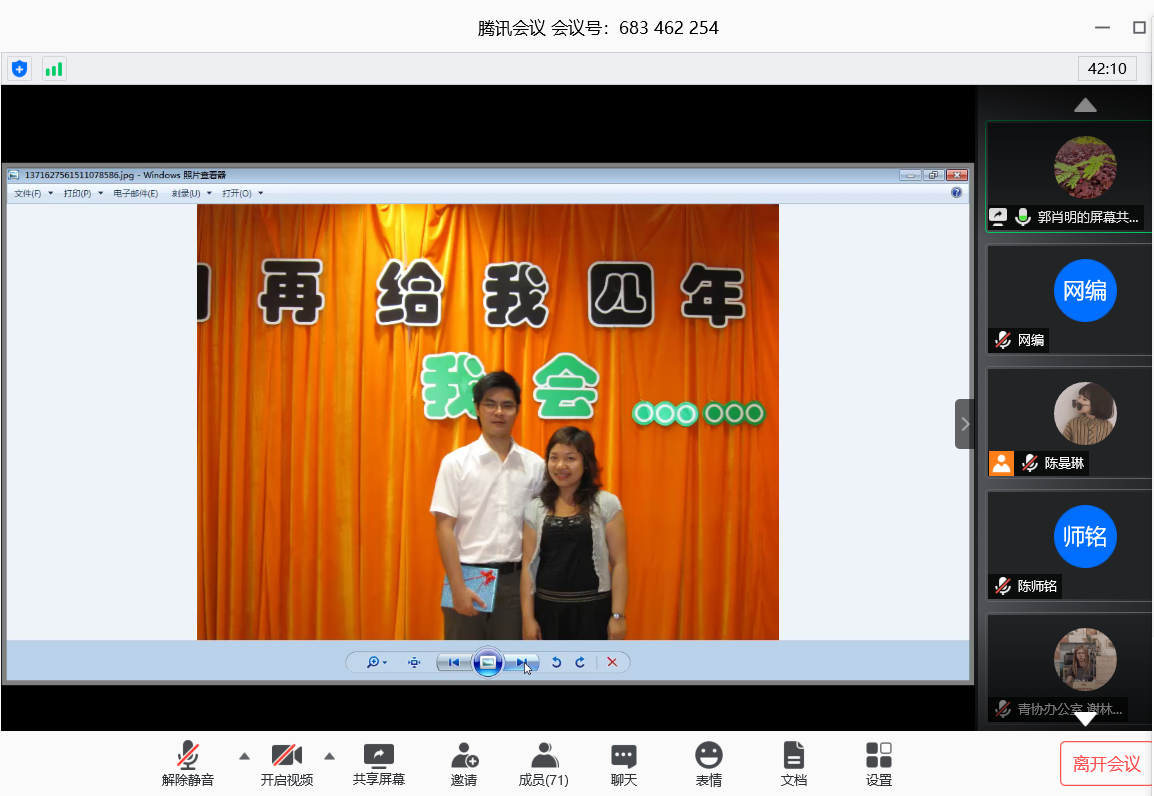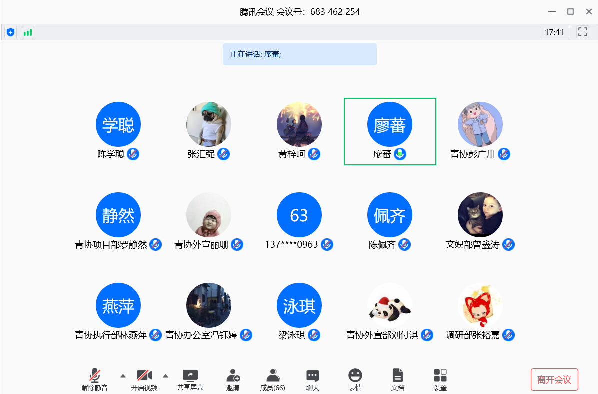 为充分发挥学院学生组织在学生工作中的核心作用,将优秀的工作精神和态度传承下去,优化团委、学生会、青协组织队伍建设,加强学院学生干部的自我教育、自我管理、自我服务的能力,增强组织凝聚力和战斗力,促进我院学生队伍全面发展。计算科学学院于2020年5月28日下午在腾讯会议召开线上三大组织换届动员大会。出席本次会议的有学院党总支副书记郭肖明,辅导员廖蕃,以及三大组织副部以上的学生干部等。
