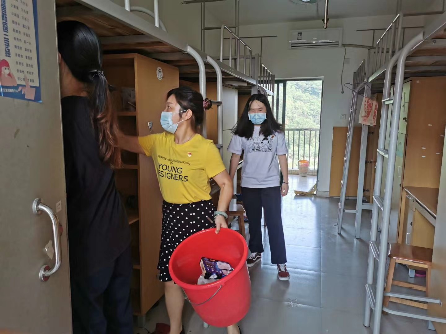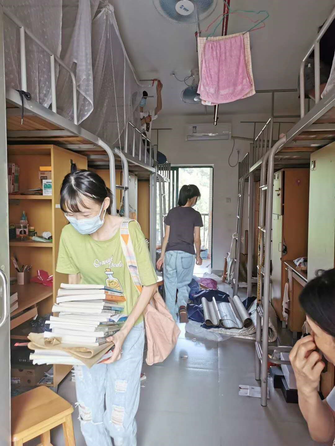 一名党员就是一面旗帜,一个支部就是一座堡垒。在6月30日毕业生离校和7月1日非毕业班学生马上就返校腾挪宿舍工作叠加情况下,清理规整学生宿舍时间紧、任务重!这个时候,为了有序推进两个工作同时顺利开展,党员学生“说上就上”“说干就干”!6月30日的下午估计最高温度达37-38℃,光是坐着不动都会汗流浃背。但党员学生戴着口罩,高温中在宿舍清理杂物,所有人的衣衫都被汗水湿透了。