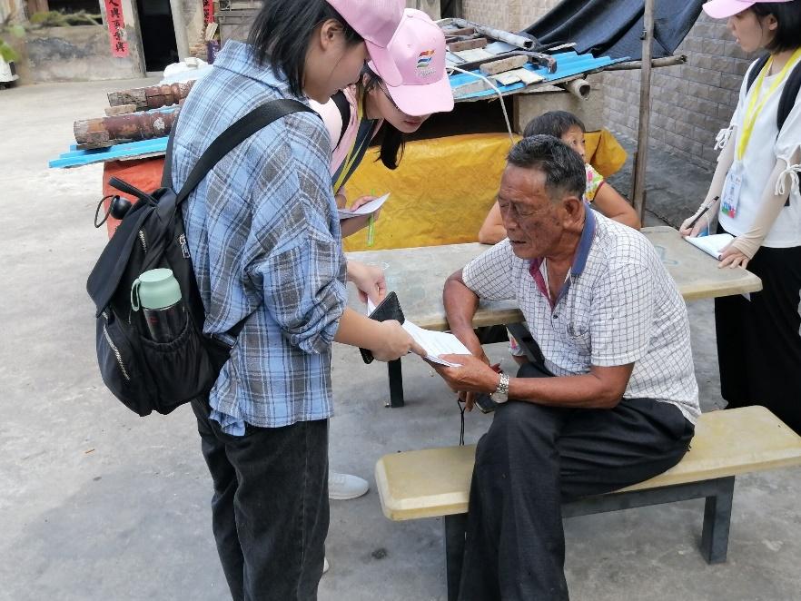 在一天的调研过程中,队员们遇到了许多热情的村民,大部分村民都很积极地配合并认真填写调查问卷,队员们也将环保袋和课外小书本作为小礼品赠送给他们。即使烈日炎炎,但队员们也没有一丝懈怠,仍然保持着那份热情,最终收获调查问卷42份。相信闸岗分队的全体队员在接下来几天的调研活动中依旧能够收获满满。
