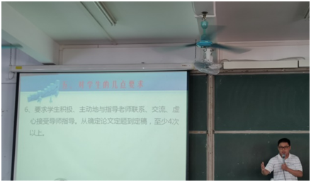 王前强调,同学们要听从指导老师的安排,勤与指导老师联系。他重点讲了论文的格式以及论文的查重率问题,希望同学们不要存在侥幸心理,认真实干,交出一份令自己满意的答卷。