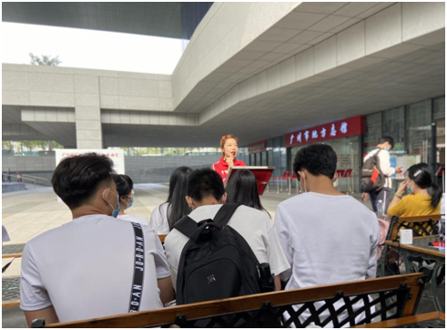 学习之后,郭肖明带领全体参与人员齐唱《歌唱祖国》。此次活动学院创新了党课学习的模式,把课堂搬到广州市地方志馆,将学习“十四五”规划和习总书记视察广东重要讲话精神深度结合,常学常新。在理论学习基础上,辅以实地参观地方志馆,了解我们学习生活所在的广州其过去、现在和未来。广州市地方志馆的“老城市新活力”展区,展示了广州发展的历史及其焕发经济发展方面活力的进程和成果,“粤港澳大湾区”展区展现了“一核一带一区”区域发展新格局,使师生对十九届五中全会提出来的坚持创新核心地位有更深刻的认识,对十四五规划提出的社会文明程度得到新提高,更加坚定了文化自信。