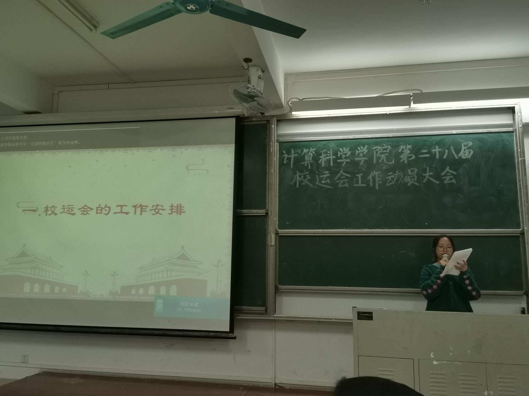 11月11日下午,计算科学学院于杨楼310室召开了第二十八届校运会工作动员大会,参加本次会议的人员有党总支副书记郭肖明、辅导员张素雅和廖蕃、以及我院团委、院青协、院学生会的工作人员。会议由廖蕃主持。