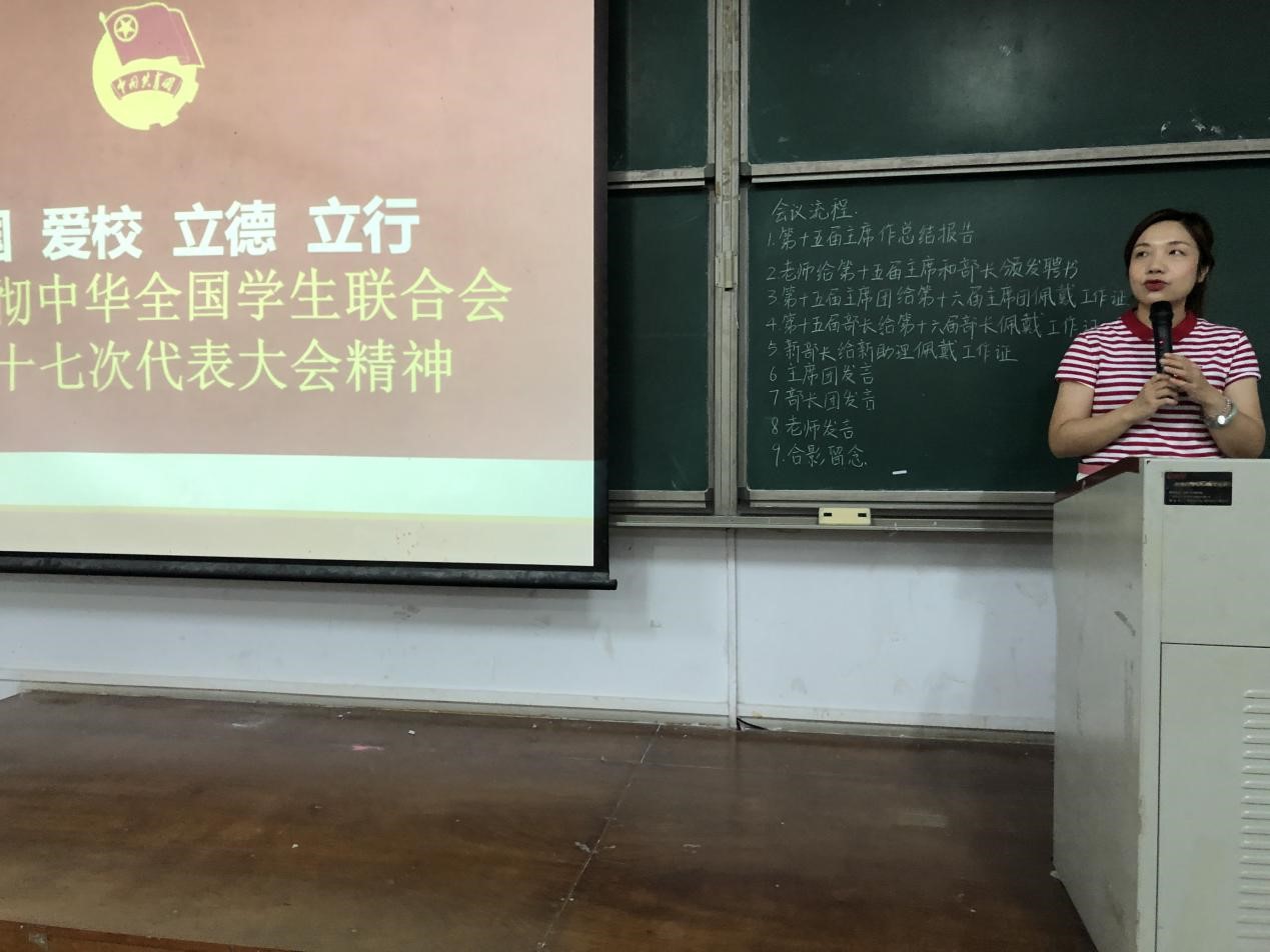 会议开始,上届院学生会主席叶佩贤同学上台发言,她对近期的活动进行总结,要求部门内部和部门之间加强沟通,在开展活动过程中要相互协助、互相补位,希望院学生会越来越好。