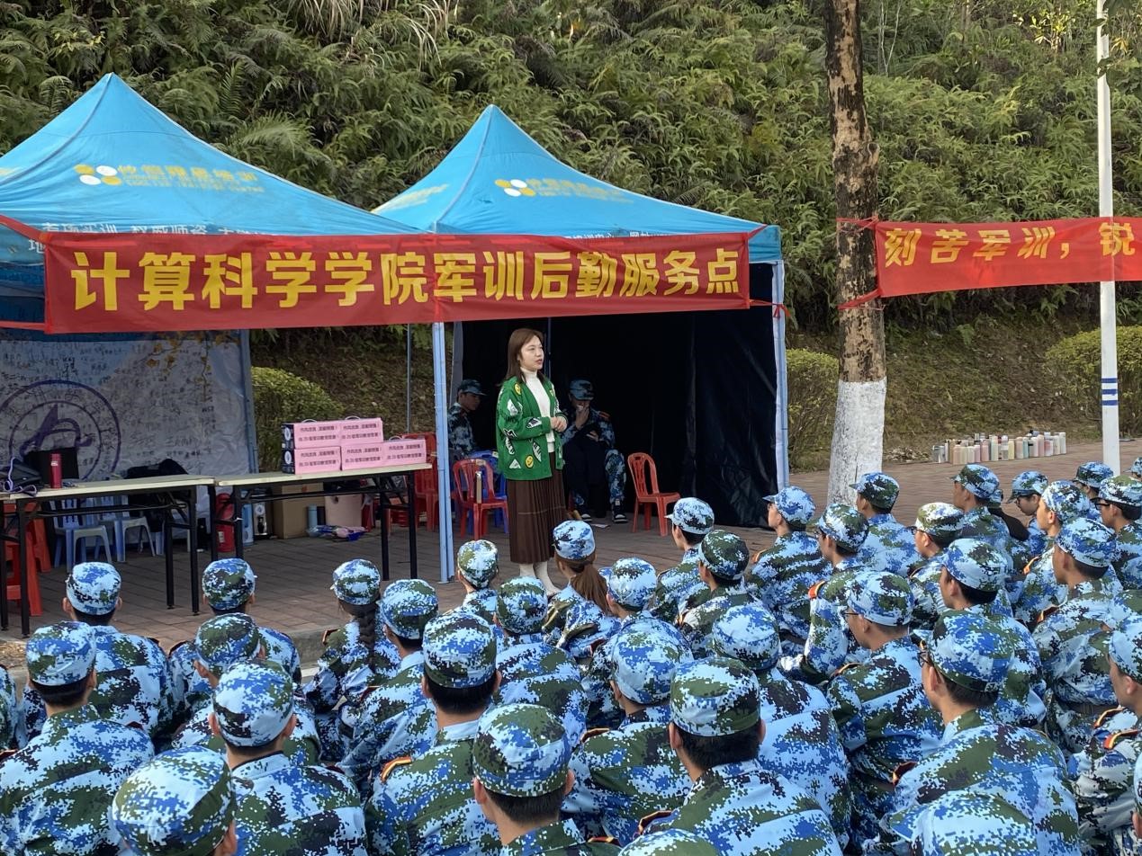 2021年1月18日,计算科学学院党总支副书记郭肖明、辅导员张素雅到军训场地看望2020级新生,并慰问学生教官。