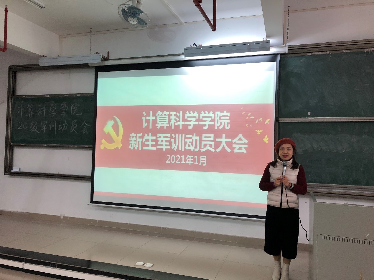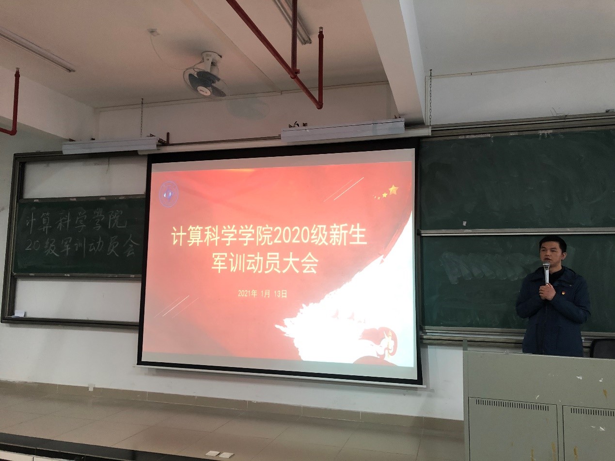 近日,计算科学学院在D栋210室举行2020级新生军训动员大会。参加本次大会的主要有计算科学学院党总支副书记郭肖明,辅导员廖蕃、吕依驰以及2020级全体新生。
