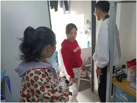 学院党总支副书记郭肖明、辅导员吕依驰走访20栋学生公寓