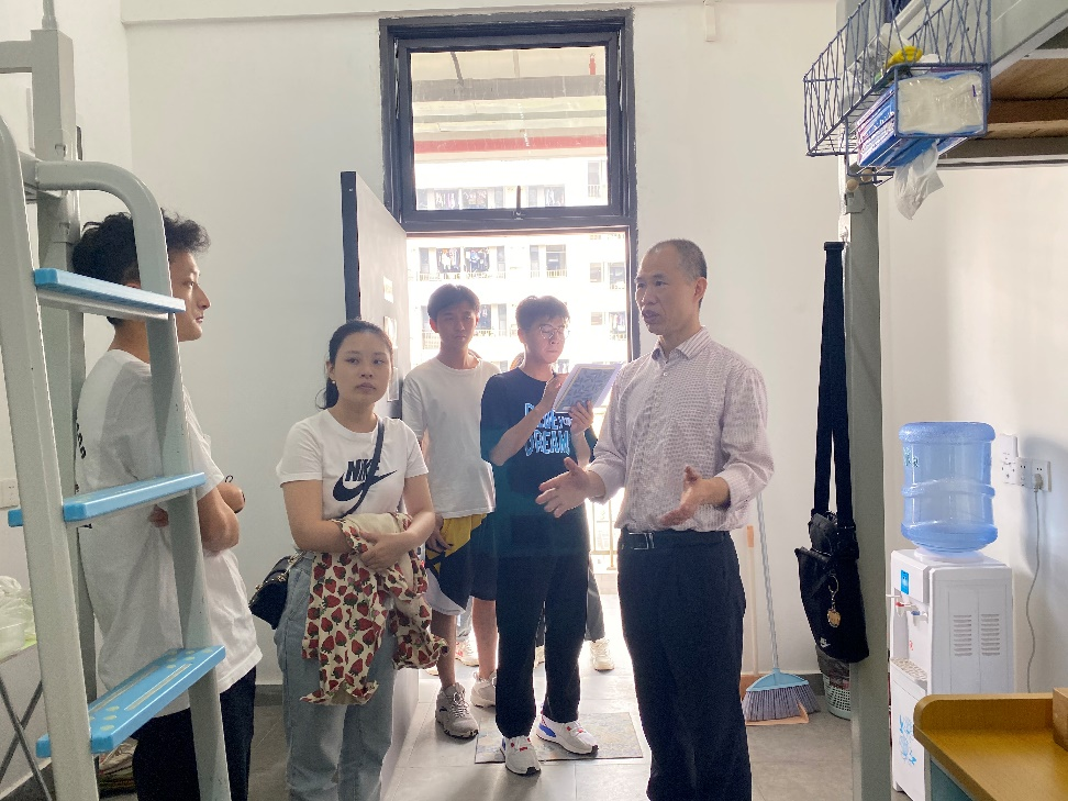 刘伟坚与学生亲切交谈,了解新生对新宿舍的满意程度、适应程序及需要改进完善的地方,强调要共同爱护好、建设好这个小家庭,真正发挥学生“自我监督、自我教育、自我管理、自我服务”的功能。刘伟坚着重了解了学生在学习和生活方面遇到的问题,表示会加强与相关部门的沟通,及时帮助学生解决问题,并强调了学生社区的用电安全、消防安全等问题,指明在宿舍不能使用大功率电器、不能将电动车电池带回宿舍充电,并提醒同学们要注重宿舍通风、保持卫生干净,离开宿舍前记得把排插、充电器等断电,增强学生安全用电意识,共同打造有品位、高品质的社区文化。