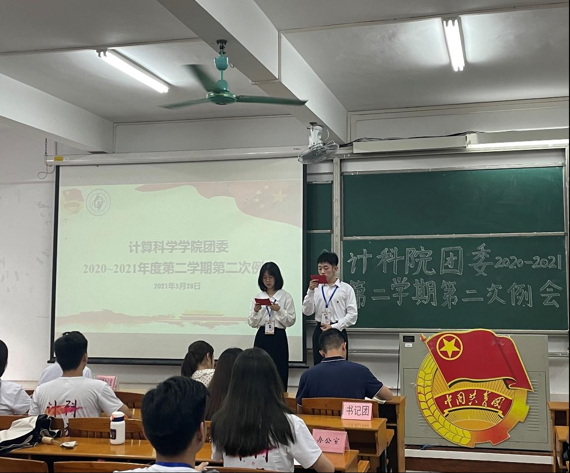 5月28日,计算科学学院团委于杨楼103室召开5月工作例会,参会人员有学院党总支副书记郭肖明、辅导员廖蕃、院团委全体成员。本次会议由陈钰莹、王译进两位同学主持。