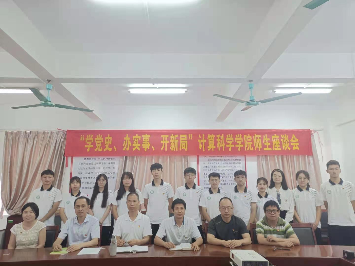 为深入贯彻学党史,办实事精神,为进一步明确应用型人才培养目标,提高人才培养质量及教学管理服务水平,5月24日下午,计算科学学院在白云校区刘宇新楼313召开师生座谈会。计算科学学院党总支书记刘伟坚、院长张超龙、教学副院长吴东庆、信计系主任王前、统计系主任杨志伟、实践办副主任杨姣以及来自学院各专业12名学生代表出席会议。会议由吴东庆主持。