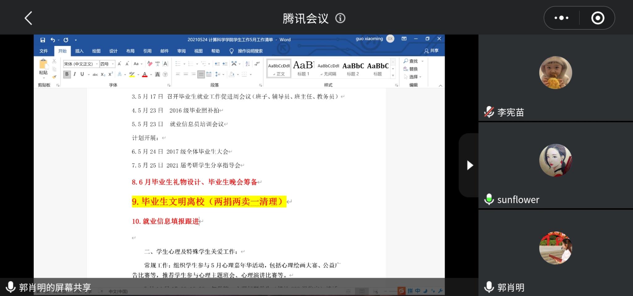 计算科学学院2020-2021学年第二学期第五次学生工作委员会议