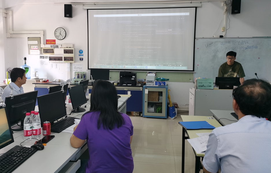 答辩现场,参与答辩的学生精神饱满,衣着整齐端庄,采用PPT进行毕业论文(设计)的陈述和汇报,具有设计软件(系统)作品的学生现场进行了功能演示。答辩评委就学生论文规范、论文内容、专业知识运用、答辩自述水平、回答质疑等方面进行点评。