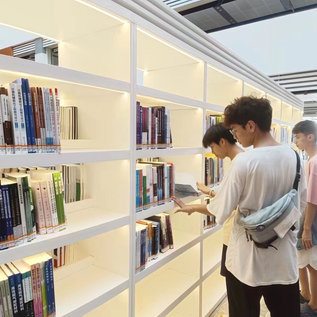 同学们走进图书馆,立马被浓浓的书香所陶醉。新图书馆的外观充满现代感,设计融汇了创新和美学。图书馆内部以橙白为主要色调,设计简洁而富有格调,营造了明亮和温馨的氛围。新图书馆提供了丰富的学习空间和足够的座位。无论是独自学习、小组讨论还是团队项目,都能找到合适的地方。在这里同学们可以尽情阅读,数以万计的经典文献,探索各个领域的研究成果,进一步拓宽思维眼界和学术视野,铺就成长成才之路。