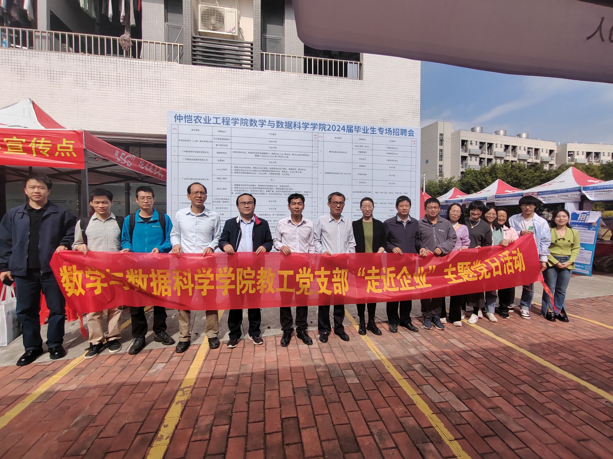 11月30日,3044am永利集团官网在白云校区学生社区20栋楼下成功举办了学生社区小型专场招聘会。学校党委常委、副校长张文峰,学生工作党委副书记、学生工作部部长沈洁莅临招聘会现场指导工作。学院党委领导班子、支部书记、系主任、教师党员纷纷到场积极推荐毕业生。